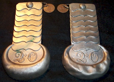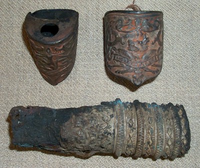 The brass tags that appear attached to some of the pieces are the museum tags, which were used for inventory purposes.
